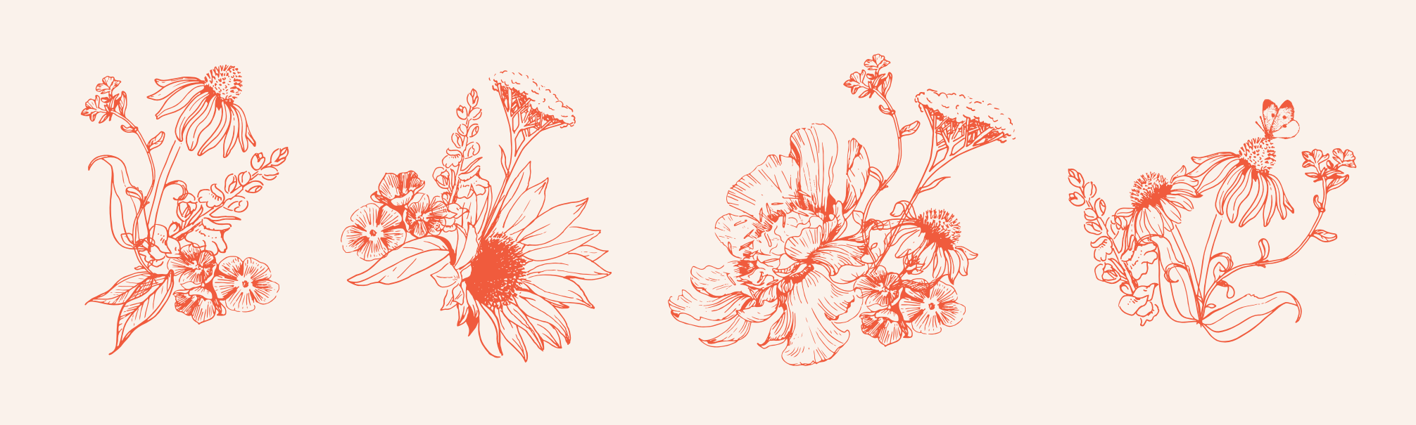 Designs for a family owned, organic and sustainable Danish florist business, where they are also the flower farmers. Warm and friendly, with personal details woven into the brand and a focus on the handmade details.